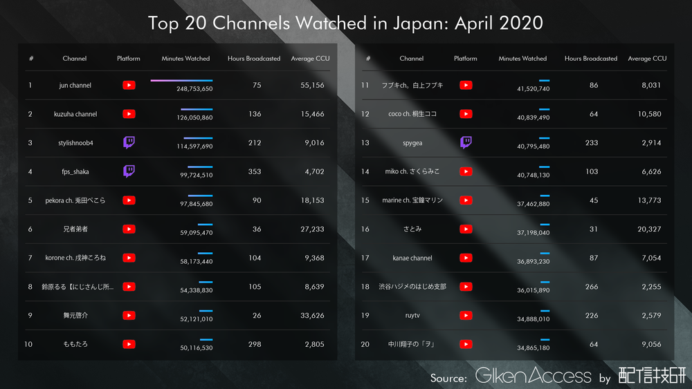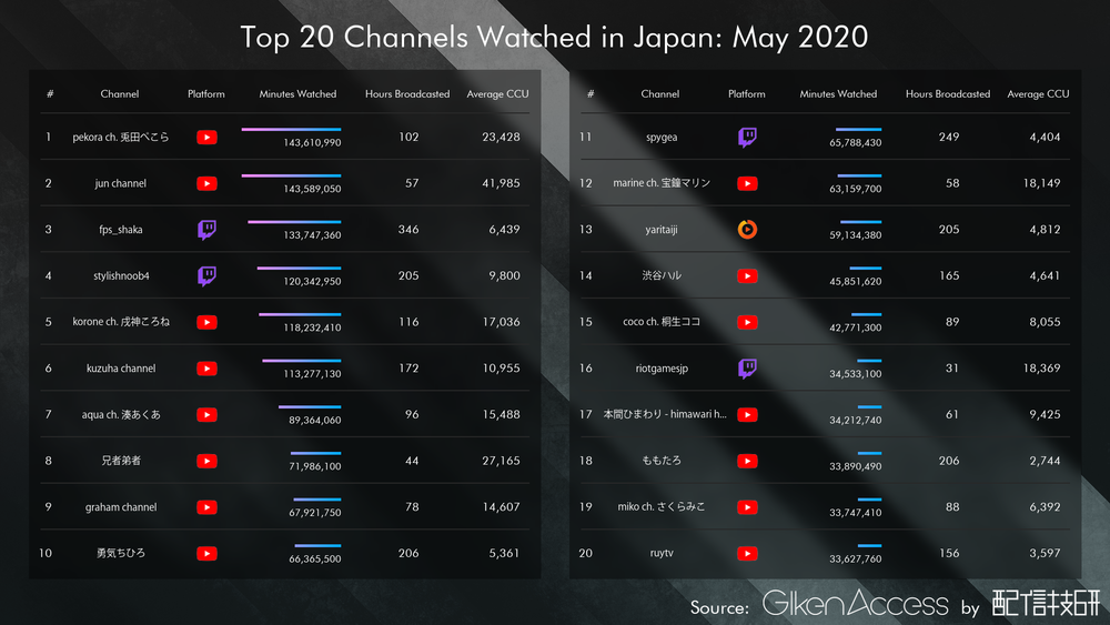 ※ランキングの指標は平均同時接続数ではなく、総再生時間であること。