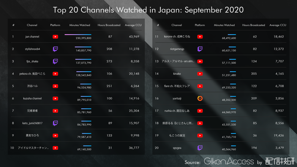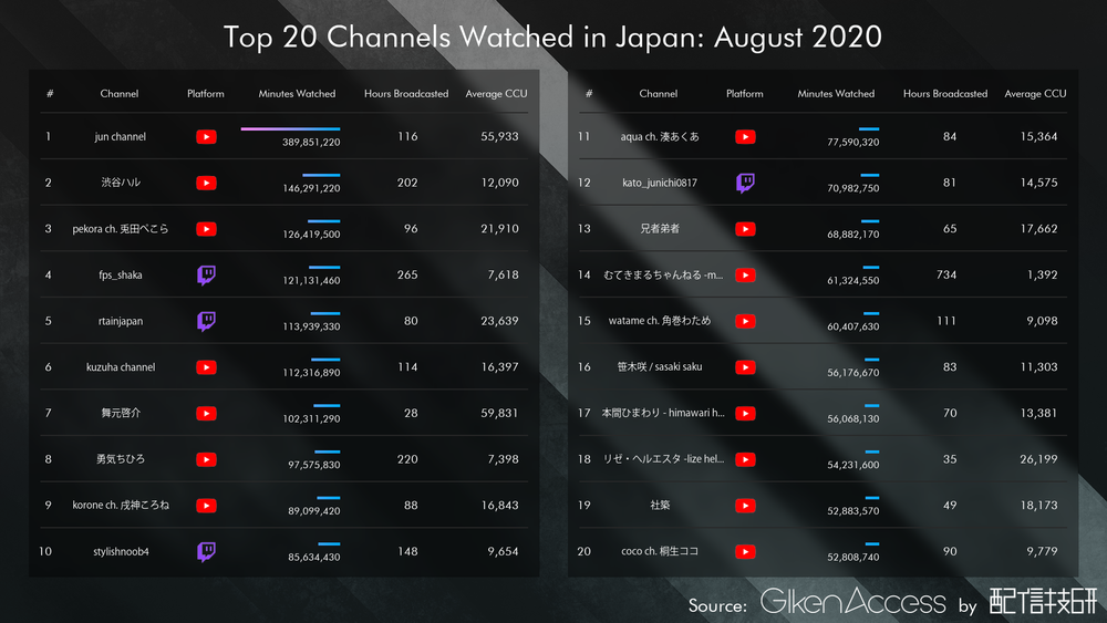 ・ランキングの指標は、平均同時接続数ではなく総再生時間。